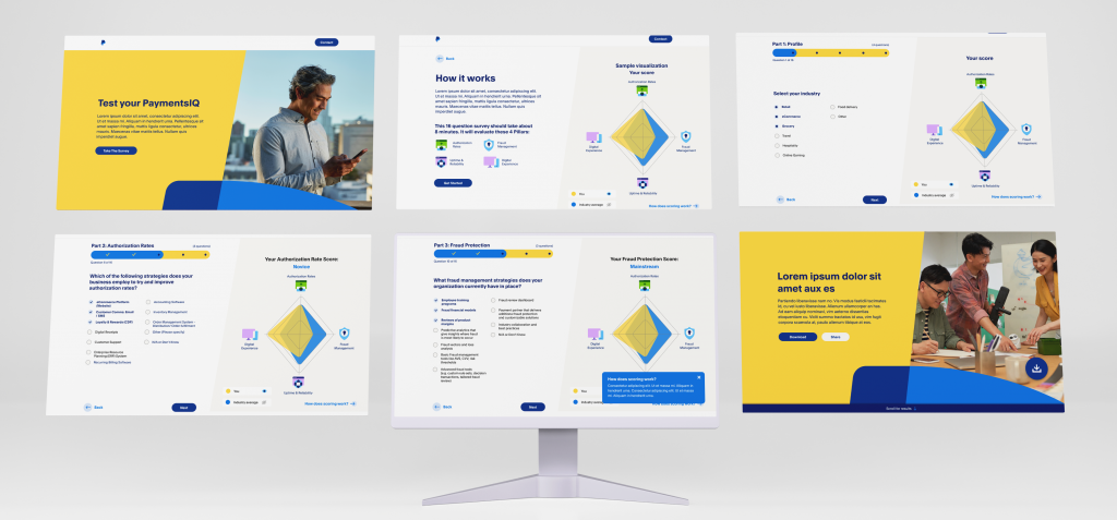 Led the product strategy and development of an interactive, in-browser survey tool designed to assess a business’s “financial readiness” across four key performance pillars. This initiative supported PayPal’s enterprise awareness campaign by offering value-driven insights to prospective clients.